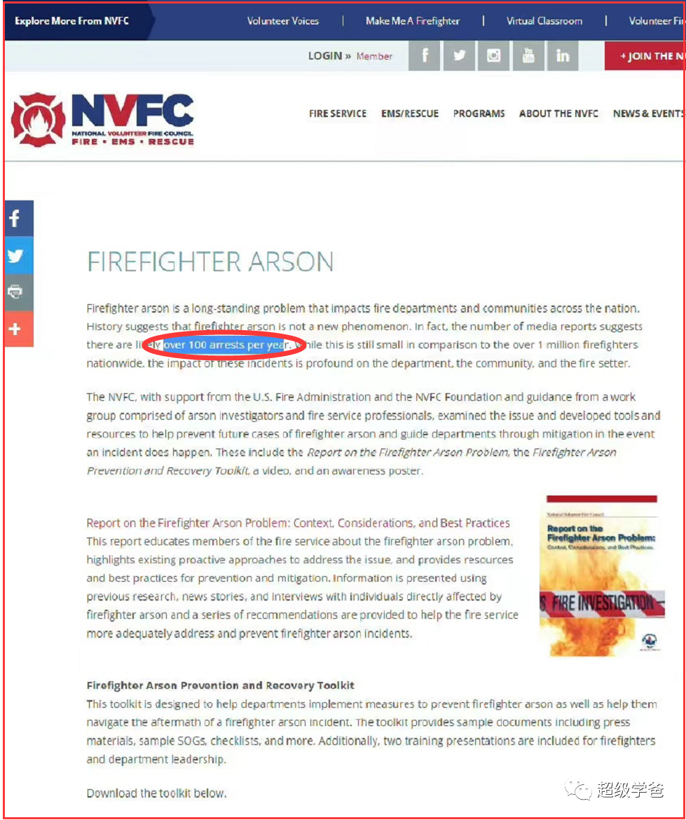 這是全美消防委員會官網的消息。原因很簡單,因為有火可滅,消防員才能掙到更多的工資。相當於縱一次火,就給自己拉上一個業務大訂單。