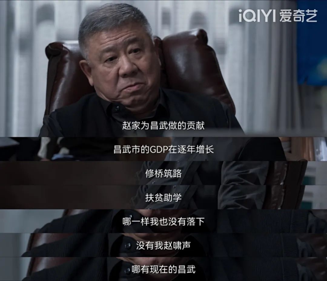 趙家的當家人趙嘯聲,曾是警察出身,與李幼斌飾演的“警界之光”嚴國華是警校校友,只不過後來從商下海,成了如今昌武市最強的地頭蛇。趙家老大趙鵬展,腿被夏宗濤打殘了長年坐輪椅,肉體的柔弱很好掩蓋了氣運籌帷幄的深沉心機,除了父親趙嘯聲,趙家他的勢力最強。