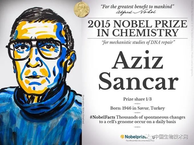 北卡羅來納大學醫學院生物化學和生物物理系Aziz Sancar教授長期致力於DNA修復工作,並因在該領域的開創性工作而獲得2015年的諾貝爾化學獎。