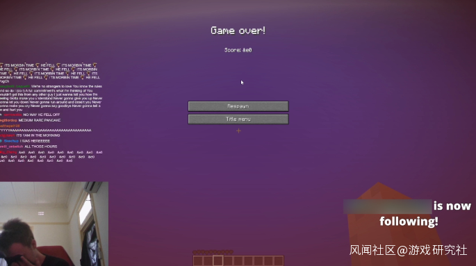 離開房間數分鐘平復心情之後,Mystical Midget抹着淚回到了攝像頭前,與觀眾們聊了聊這一年來的感受。完全隨機的地形生成,枯燥至極的重複勞動都讓他幾近崩潰,好在不離不棄的觀眾的一路陪伴讓他堅持了下來。