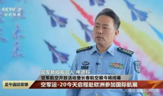 據環球網8月21日報道稱,中國空軍新聞發言人申進科大校表示,“運-20今天啓程飛赴歐洲,參加奧地利空中力量國際航展。”