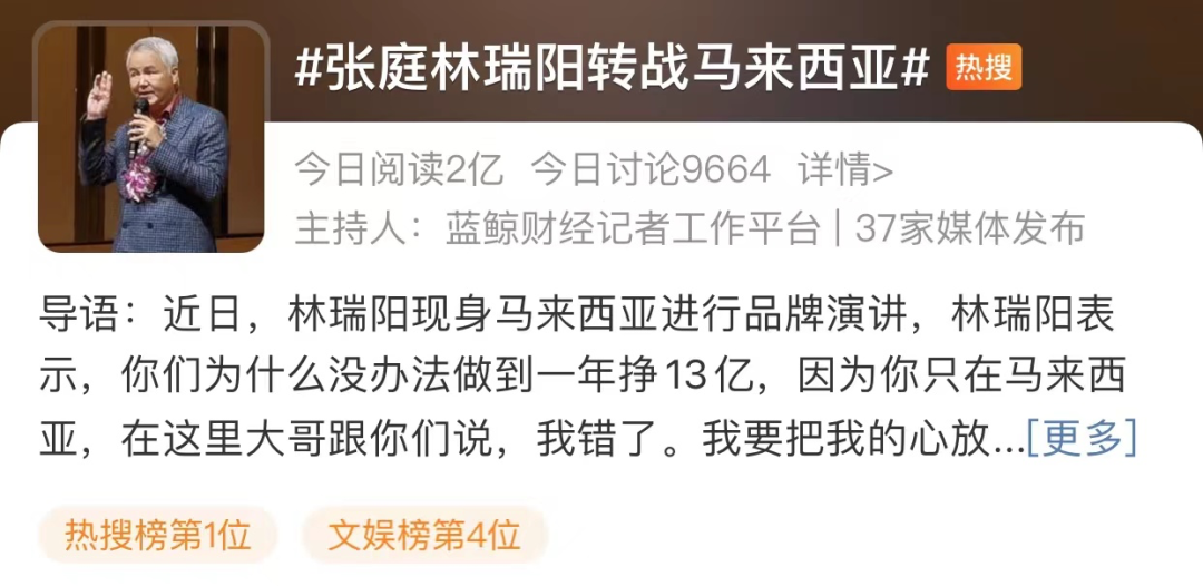 8月24日,一則**#張庭夫婦轉戰馬來西亞**的消息從大洋彼岸傳來,衝上熱搜榜一。
