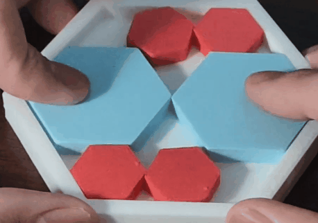 比如這道題目:讓網友把幾個多邊形更好的排列組合,以便讓這些多邊形之間接觸面積最大化。