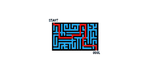 老哥在迷宮中模擬灌入若干的綠水,直到這些水把整個迷宮都充滿,在那些被封死的絕路上綠水就無法通行了,直到這些水在灌滿整個迷宮之後,正確的路線就順理成章的出現了。