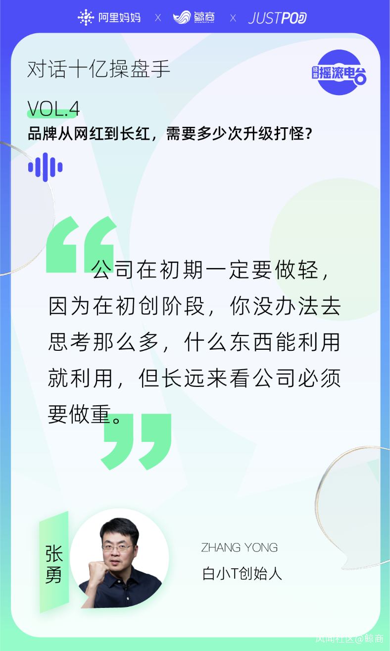 細分小眾品牌又容易遇到發展瓶頸,如何“破圈”成為大眾品牌,從網紅到長紅,在用户需求洞察、產品打造、平台流量玩法等方面,都一套科學的“組合拳”。為了讓創業者少走彎路,8月,阿里媽媽“經營搖滾電台”欄目推出“對話十億操盤手”專題。
