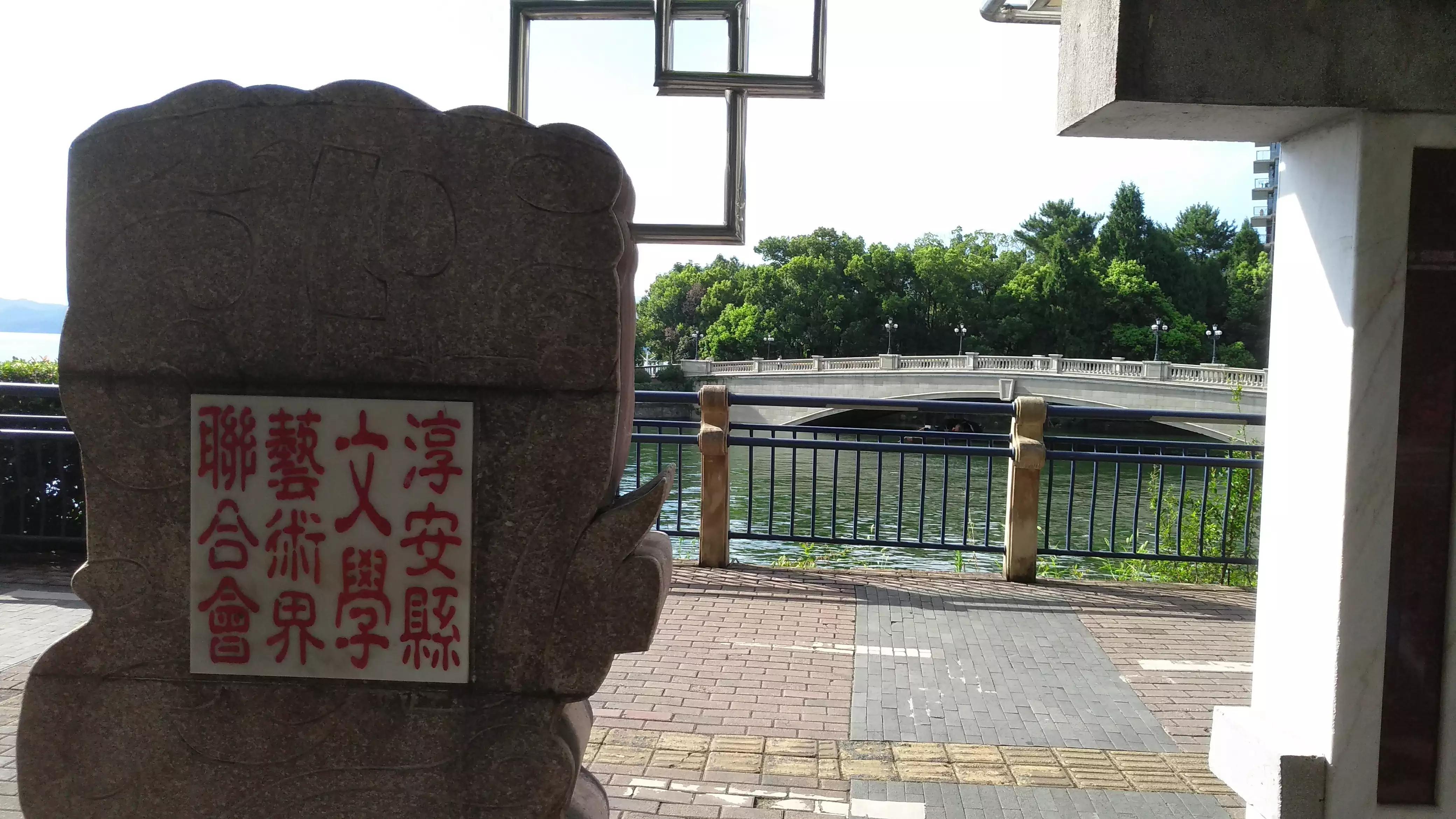 ( 淳安縣文聯的藝術章石雕與湖中橋樑樹木 攝影 :上海阿蔡 )