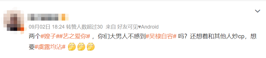 兩對CP都疑似男方有了女友,於是,“嫂子”的話題詞在9月1日下午衝上了微博熱搜第一。不明真相的羣眾看到這個微博熱搜,可能會完全摸不着頭腦。