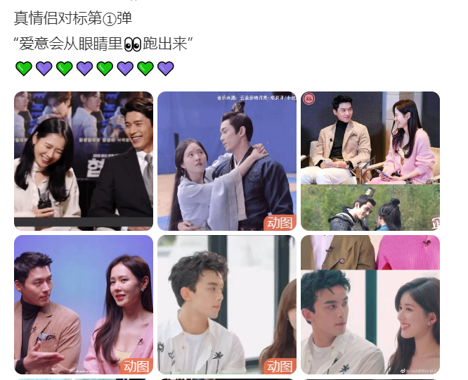 因此,在劇集播出之前,劇宣們一般都會從現有的劇集或者拍攝的花絮中,找到一些可以發酵的CP向內容,做一波推廣。據毒眸觀察,一般一部劇剛播出時,最先經營起來的往往是劇集角色的CP超話,這時候大家的嗑糖素材還是來源於劇情。但是到後期,隨着劇集播出之後演員的互動內容越來越多,比如雙人採訪、雙人綜藝等等內容,真人CP就會後來居上。