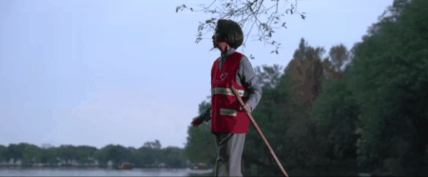 第一次,女兒確診前,在湖邊掃地突然崩潰,觀眾是從湖面之下看岸邊手足無措的她。
