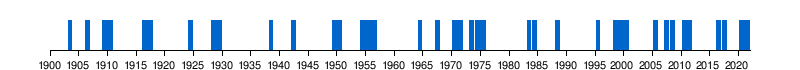 https://en.wikipedia.org/wiki/La_Niña而從1950年代發現“拉尼娜現象”以來(之前的“拉尼娜事件”是根據歷史觀測數據進行推論),之前只觀測到過三次“三重”拉尼娜事件,分別是在1954-1957年、1973-1976年、1998-2001年,前後間隔都在20年左右。