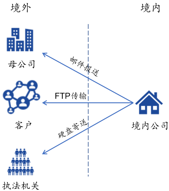 1.1 境內主體使用專用於數據傳遞功能的軟件或硬件介質,向境外主體提供數據專用於數據傳遞功能的軟件包括電子郵件、FTP、跨境搭建的VPN、API等傳輸信道等,硬件介質包括U盤、移動硬盤、甚至裝載數據的便攜筆記本等。當企業以這些方式向境外提供數據時,其通常能夠意識到發生了數據出境,可能會觸發相關合規義務。以下是此類場景在企業經營實務中的一些常見範例: