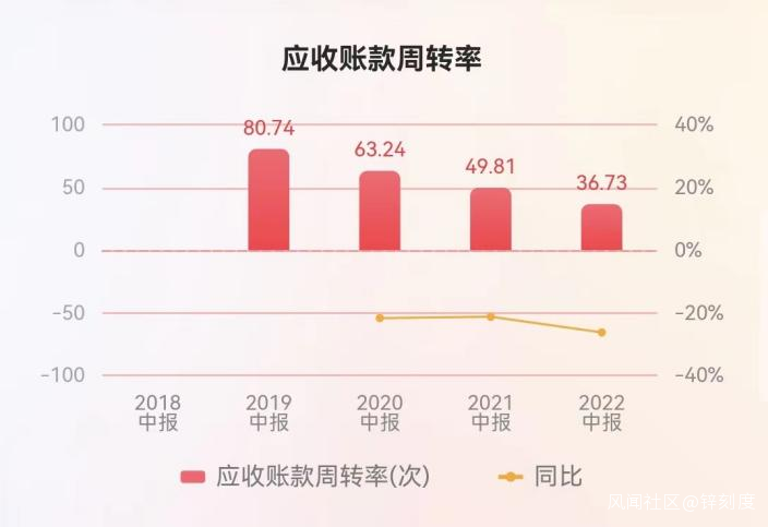 換而言之,**萬科或等不起了。**據公開數據顯示,截至2022年6月30日,萬科的淨利潤為122.2億元,2020年同期為125.1億元,僅稍許微降;經營活動現金流量淨額為82.88億元,2020年同期為226.1億元,下降了63.34%;應收賬款週轉率為36.73,2020年同期為63.24,下降了41.92%,須知應收賬款週轉率越高意味着表明收賬速度越快,平均收賬期越短。