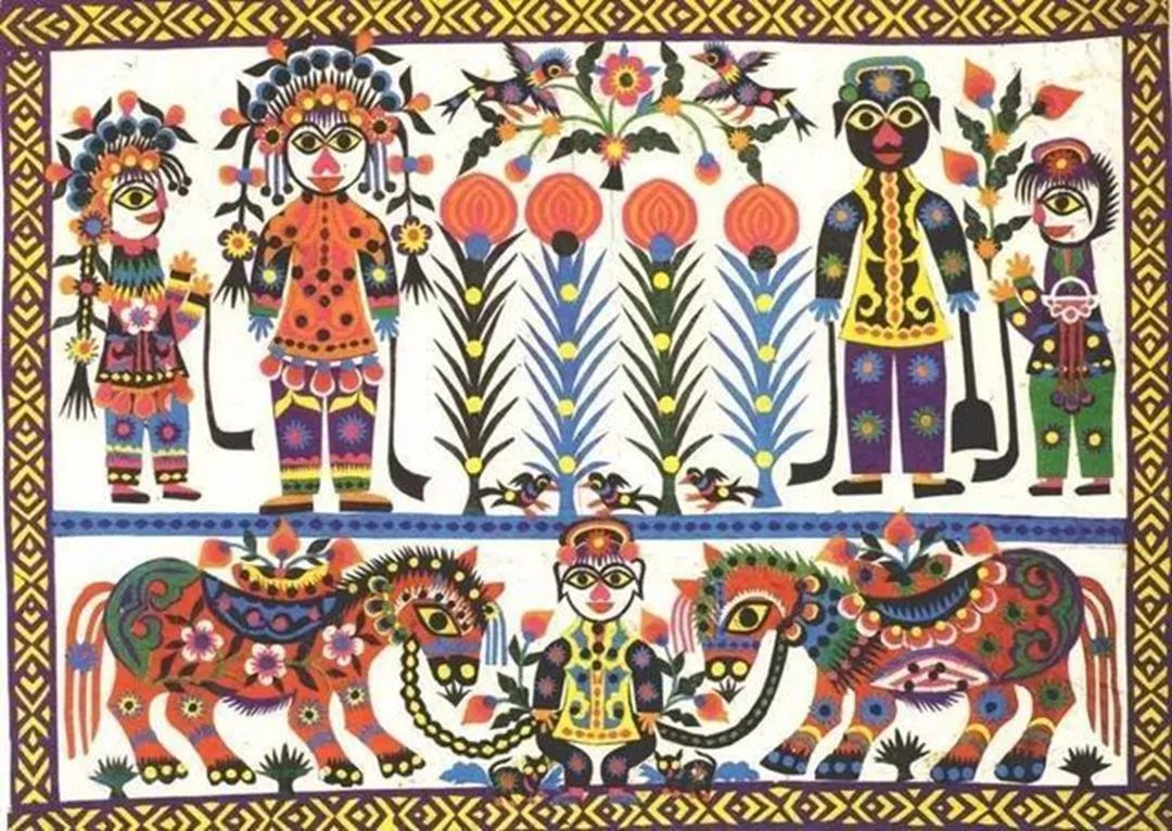 庫淑蘭打破了剪紙藝術中以單純的模仿來傳承的傳統的方式,獨創了表現其自我靈魂的藝術模式——剪貼畫。