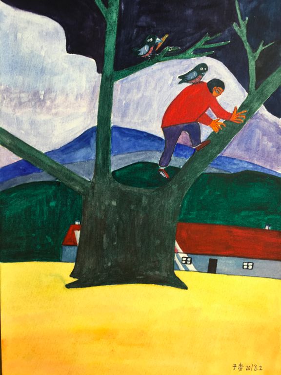 從目光所及的周遭事物中得到感觸,從一片樹葉,一棵樹,一個小房子開始,子貴畫下了自己的心情,也畫出了他所理解的世界。