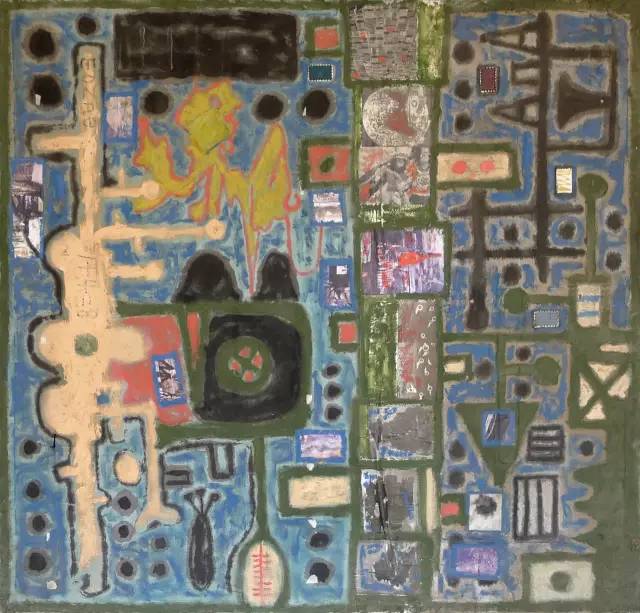 《鬥牛場》廢布,自制木框,丙烯,水墨,廢紙粘貼