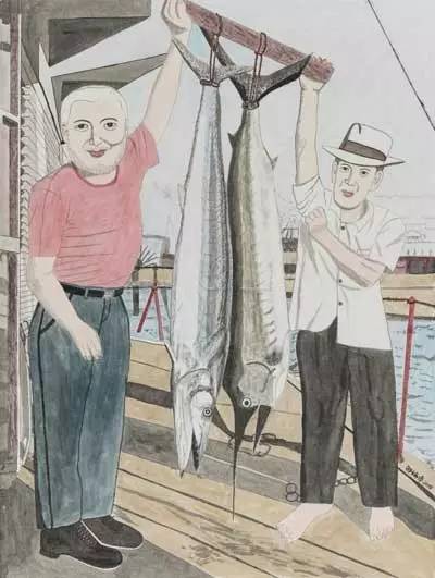 女兒、女婿晚上回到家來,看到桌上的畫大吃一驚,覺得畫作有英國繪畫大師大衞·霍克尼的風格。