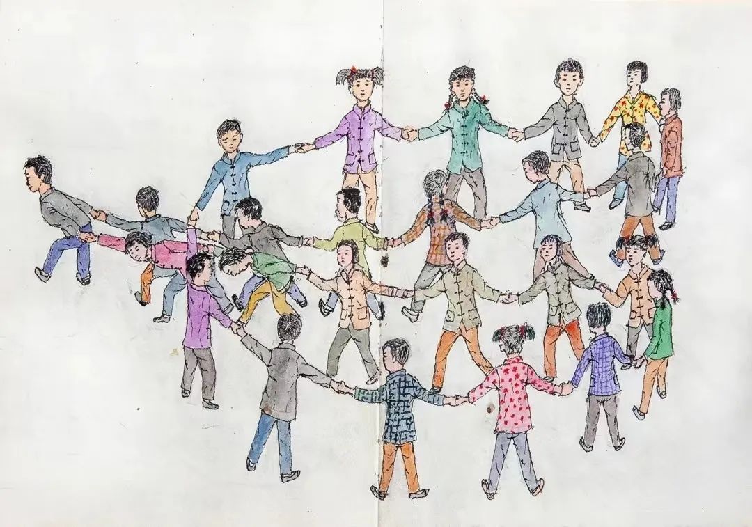 焦金安的畫作記錄了很多如今已經很難見到的,獨屬於他那個年代的童年遊戲: