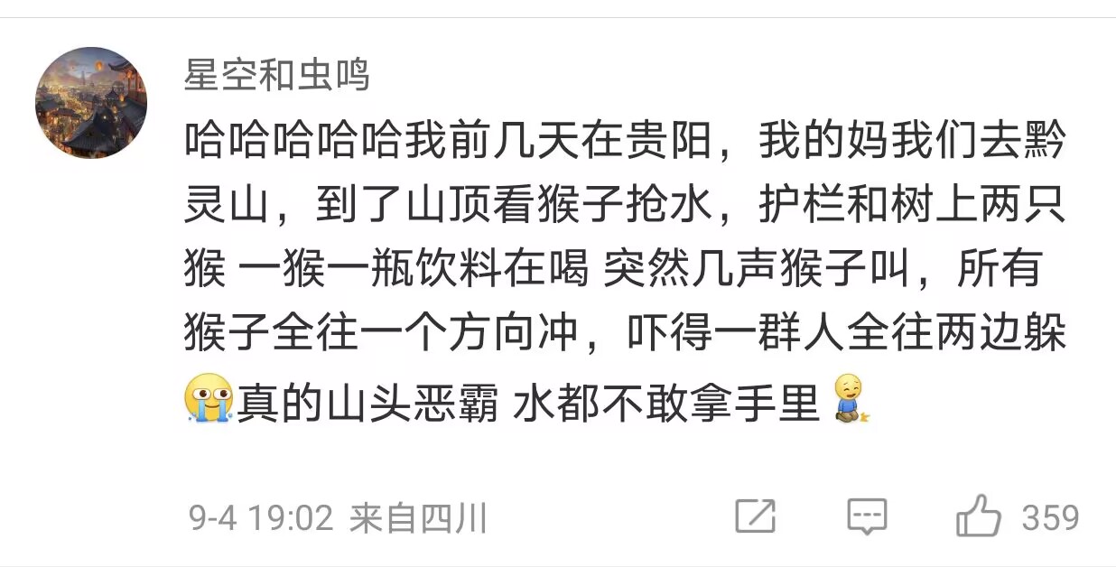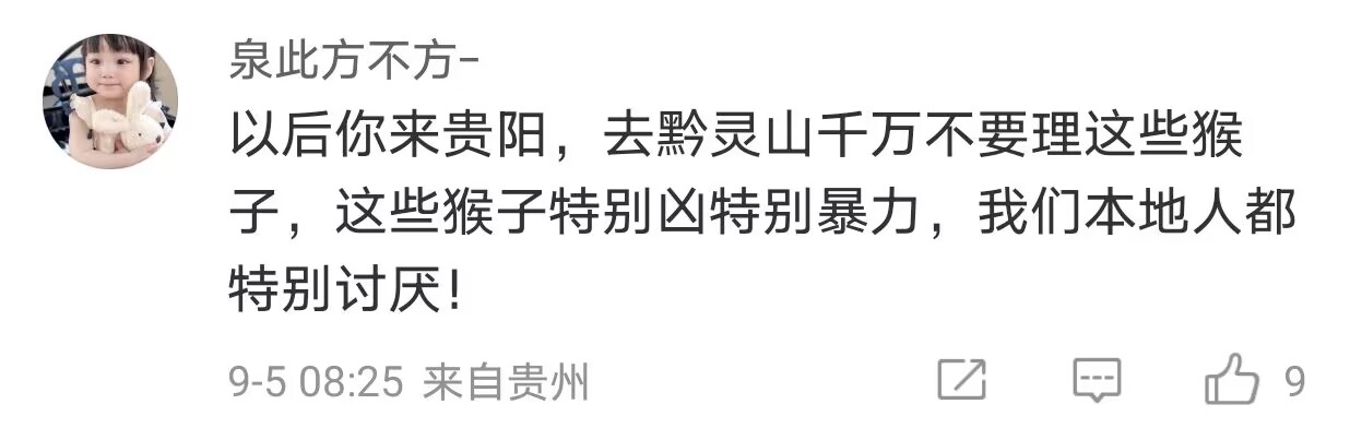 網上還是有人提醒,貴陽的這些猴子看上去人畜無害,但隨意接觸還是十分危險的。