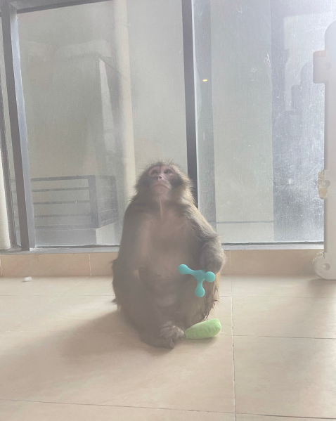 運氣比較好的是我出去的時候猴子正巧離開客廳回到廚房,我馬上衝過去推關上廚房門把它關起來了,不然我一定會被猴子揍一頓。(它好凶的…