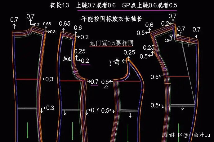 我覺得這個是個誤會,或者説誤區。服裝製版,放碼是有一套計算公式的。如圖1,如果某個地方沒放。復版的時候就一定會出問題的。繼而帶來的是一系列的問題。
