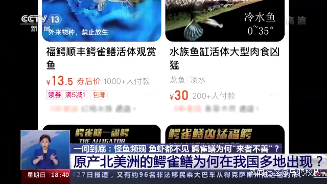 2這個問題實際上有兩個部分:**一,這些物種是怎麼進入中國的?二,進入中國之後,它們又是怎麼擴散出去的?**真要説的話,鱷雀鱔進入中國並不難,因為它曾經還作為觀賞魚類被主動引進中國,而且還有一個吉利的名字叫“福鱷”,不僅能夠在花鳥市場買到,還能在電商平台網購。