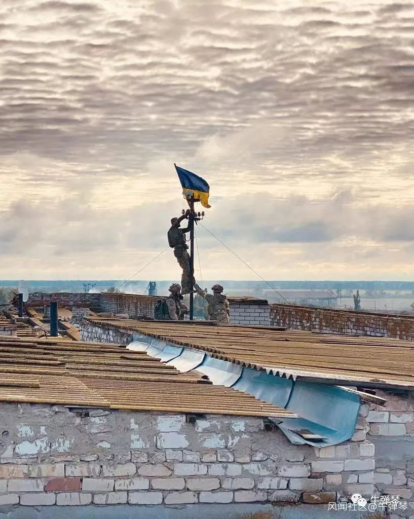 **Vysokopillya,****赫爾松地區,****烏克蘭,****今天。**意思很明確,烏克蘭軍隊發起反攻,拿下了赫爾松地區的這個村莊,作為勝利的象徵,士兵們升起了烏克蘭國旗。