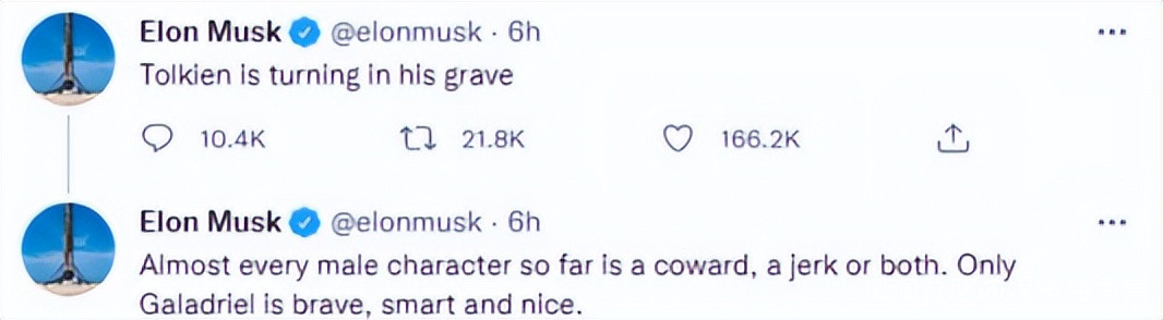 據 IGN 消息,在亞馬遜《指環王:力量之戒》上線之際,HBO 在 YouTube 上免費放出了《龍之家族》的第一集,意在爭奪市場份額。劇版《指環王》播出之後收到了大面積差評轟炸,馬斯克吐槽,亞馬遜緊急在Prime Video網站上鎖定了《指環王》的評分,試圖抵消惡意差評帶來的影響。
