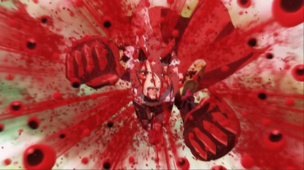 整個過程中主角友奈的身上其實一直是滿身鮮血的狀態,甚至在最後計數器歸零的那個瞬間,她全身上下都噴出了大量的鮮血,看上去無比的悲壯。