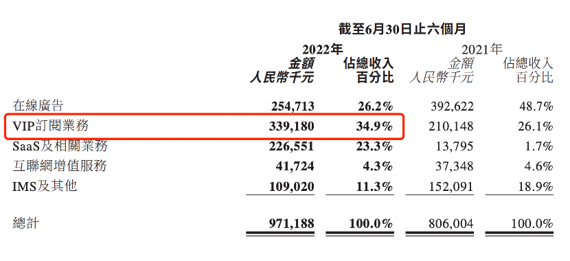 財報中,美圖將上述業務視為成功推進業務轉型的一個重要里程碑。從收入來看,2022年上半年,來自VIP訂閲業務的收入為3.392億元,同比增長61.4%,佔總收入比例為34.93%,成為公司第一大營收來源。