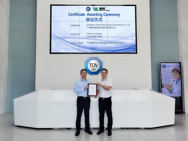 鵬輝能源獲TUV南德全球首張IEC 62619:2022認證證書_風聞