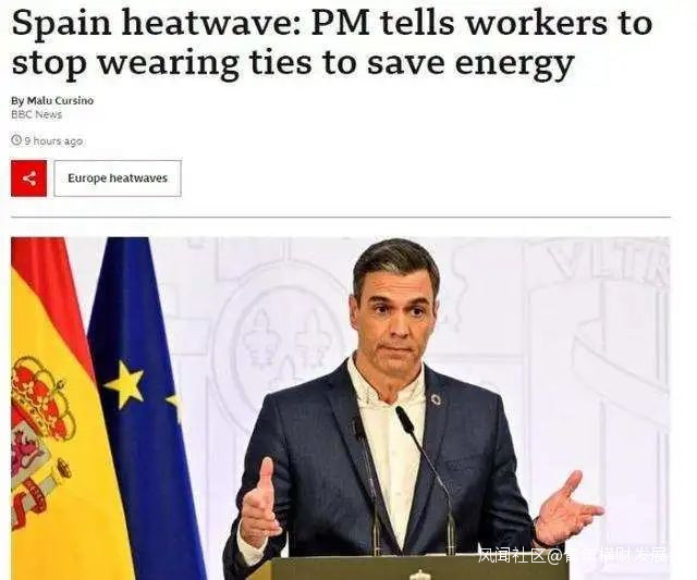 而西班牙首相桑切斯則呼籲民眾平日裏少打領帶——不打領帶就要涼快點,以便節約製冷電力給冬天做儲備;而我的建議是:建議裸奔。
