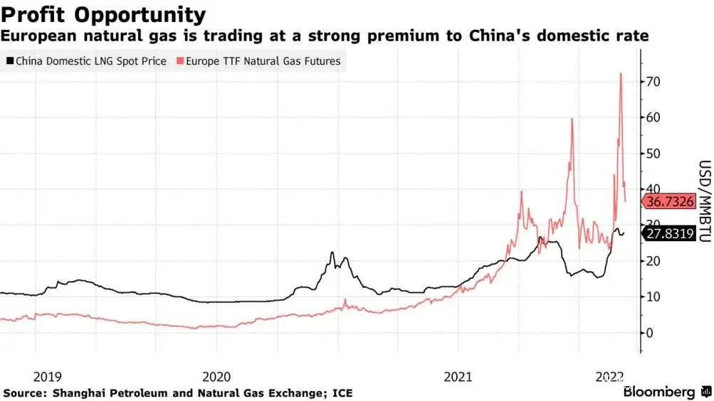 △以往中國全球天然氣採購價均高於歐洲,現在反過來有高套利空間了