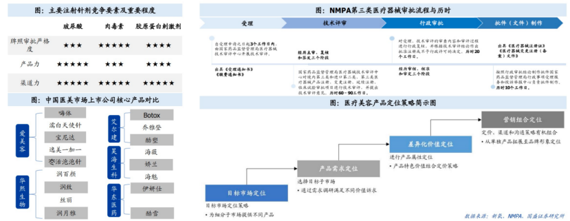 **嚴監管政策下醫美牌照高度稀缺:**破皮注射且停留體內的醫美產品按III類醫療器械嚴格監管,註冊耗時長、獲批成本高,強資質壁壘建立稀缺性。