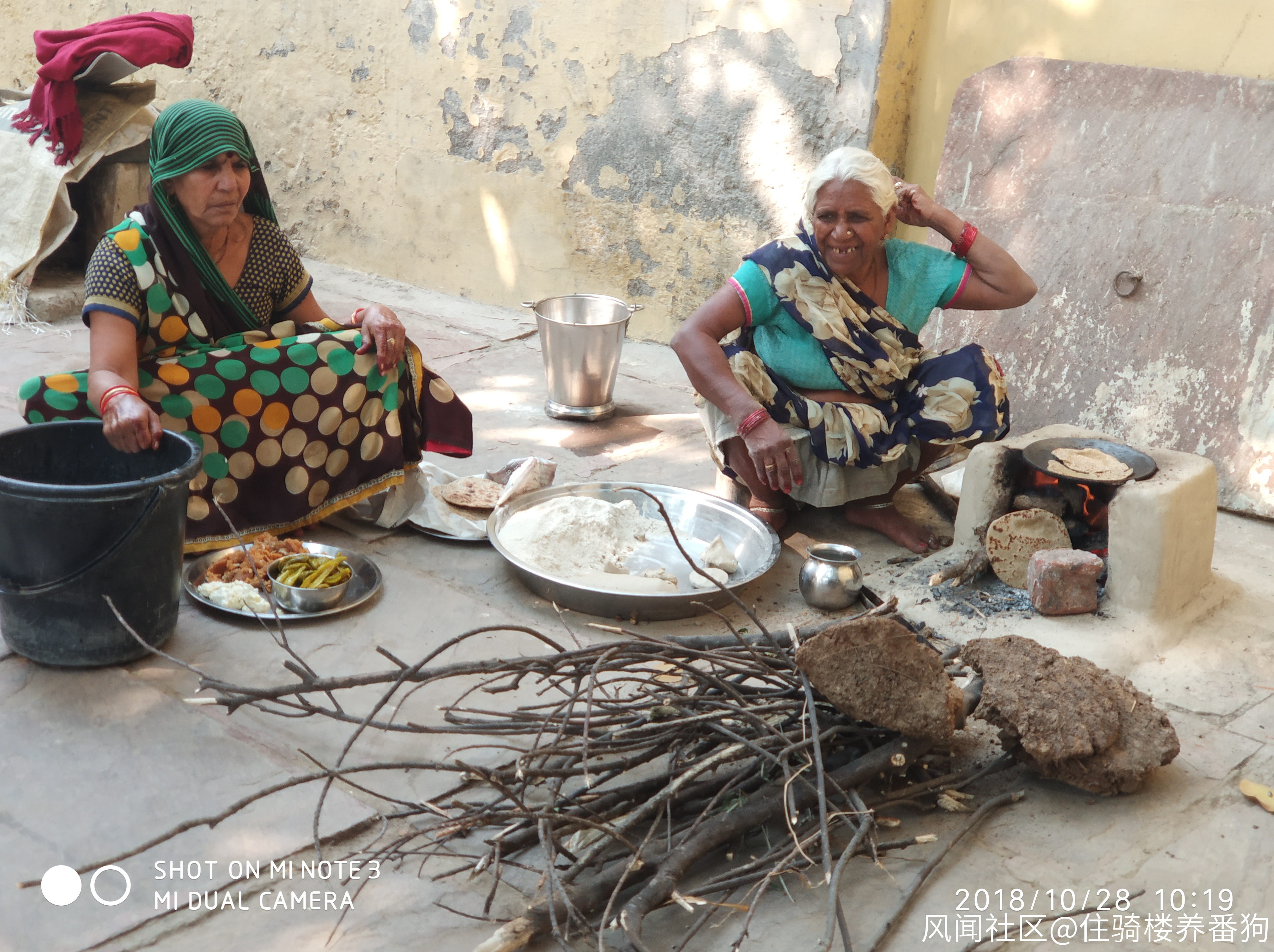 (木柴上圓圓的就是牛糞餅,這個地區有罐裝煤氣售賣,但是婦人們依然燒柴火和牛糞餅,她們一邊整理着帶有牛糞的柴火,一邊用手做烤餅,嗯!我吃了烤出來的餅,太餓了,沒辦法,還好吃完沒有拉肚子。)