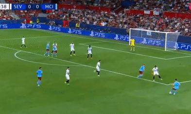 ——今天對塞維利亞,福登右路給球,丁丁套邊橫傳,哈蘭德後點包抄。