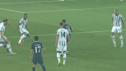 尤文圖斯上半場逼搶線很靠後,維拉蒂得以大膽推進,“你們不逼我就一直帶哦”,直接策動第二個進球。下半場尤文圖斯逼搶線上來後,巴黎這邊馬基有點吃不住,反而是拉莫斯一直在嚷嚷組織站位。跑不跑得動是一回事,腿上不夠腦子湊。