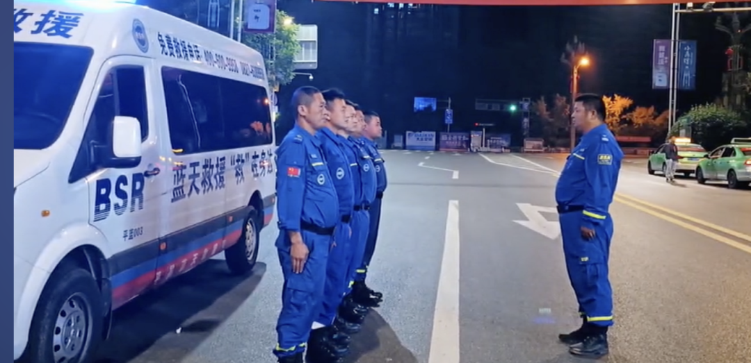 昨天凌晨,有7名神秘藍衣人,帶着救援設備連夜奔赴瀘定,第一時間衝往災區救人。