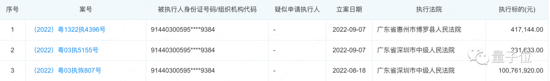 成為被執行人3次,總執行標的超過1億元。