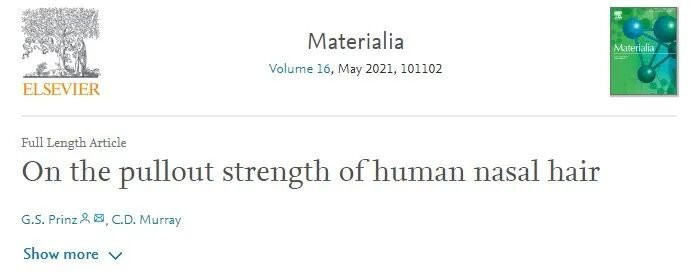 去年美國阿肯色大學研究員GS普林茨在《物質》上發表了一篇拔鼻毛要用大多力氣的論文。