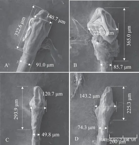 鼻毛是錐形的,有點像筍尖,具有很明顯的根尖直徑比。