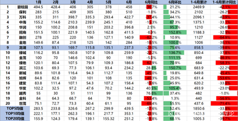 克而瑞統計數據顯示,2022年上半年,百強房企累計銷售操盤金額的同比降幅達到50.3%,其中TOP10房企同比降幅均值為38.2%。對比來看,萬科銷售情況要略差於頭部房企平均水平。