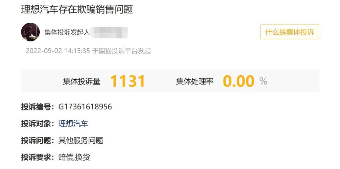 下滑的還有信任值,理想ONE突然降價,遭1100多名車主集體投訴。在黑貓投訴中,車主提到最多的字眼就是“虛假宣傳”“欺騙”等。