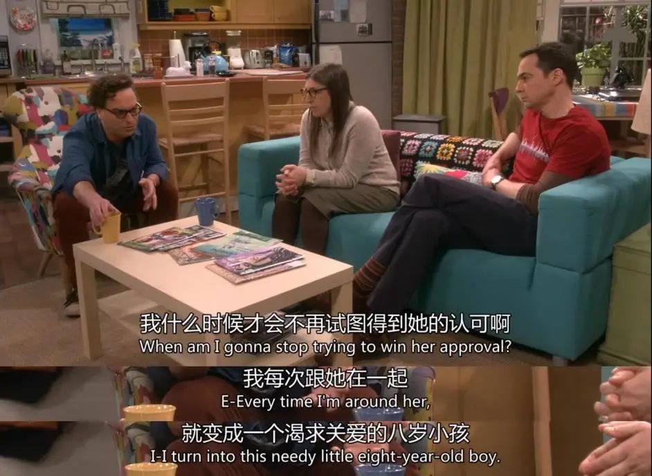 在美劇《生活大爆炸》中,實驗物理學家萊納德從小在母親嚴苛的要求和否定下長大,無論他取得什麼成就,都始終無法獲得母親的稱讚,這使他非常渴求母親的關注和認可。