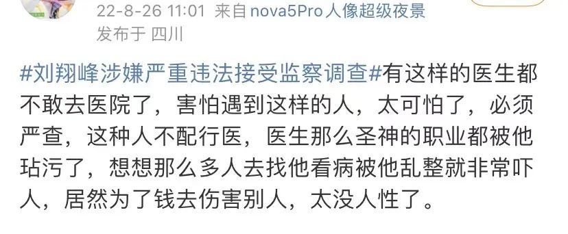 希望劉翔峯這種人,滾出醫生這個行業,不要讓劣幣驅逐真正良幣,還給醫生和患者一個純淨、互助的環境。