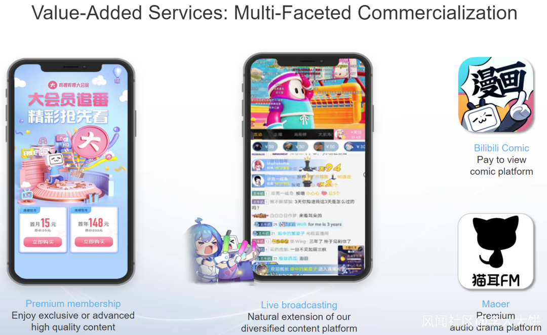 前面提到過,增值服務主要分兩塊:直播打賞分成和大會員。
