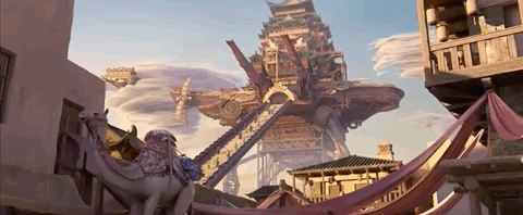 影片重塑神話中的蓬萊、方壺、瀛洲三大仙島,蓬萊仙島更是猶如N個洪崖洞疊加。