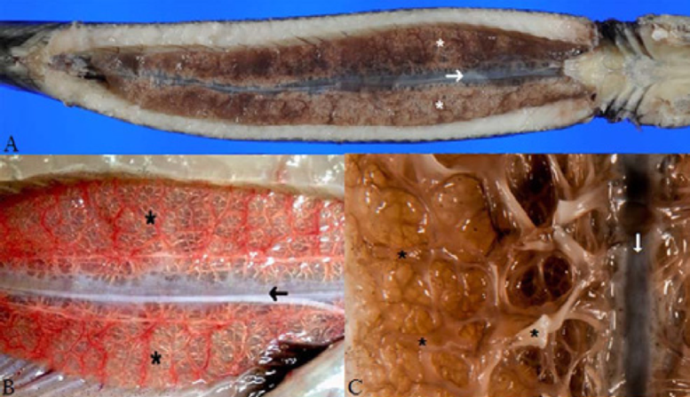 圖4 鱷雀鱔高度血管化的魚鰾 (圖片來源:參考文獻2)
