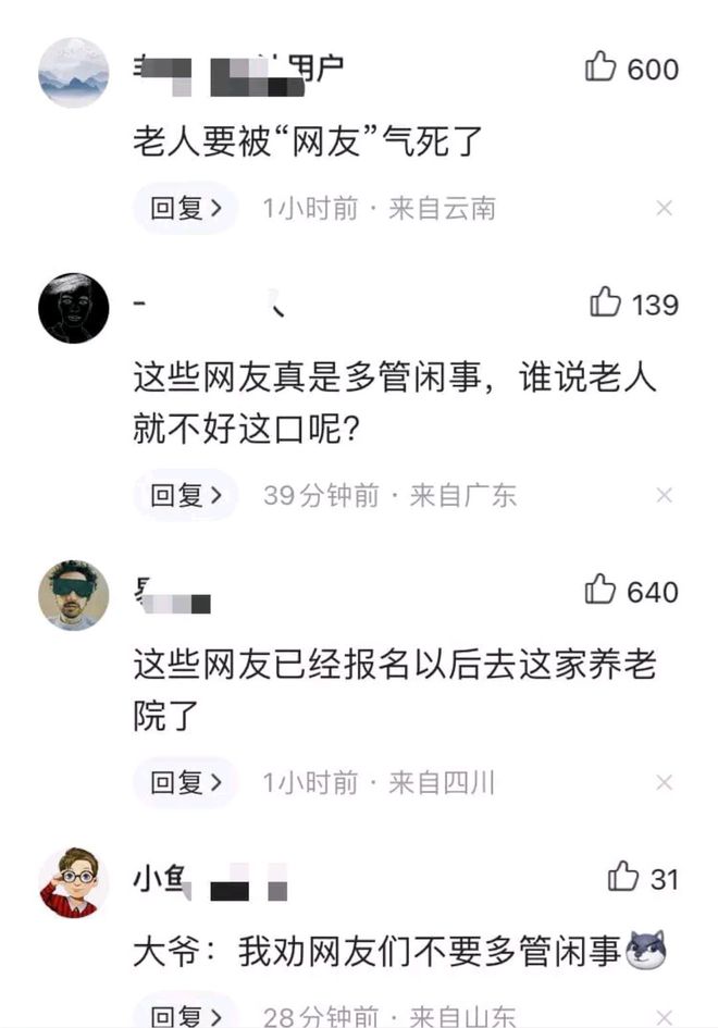 老人們都沒説啥,網友們倒義憤啥?老人:我勸網友莫管閒事,不要在這指點江山。我覺得只要老人們不反對,我們就應該支持!這些老人還能活多久?這才是真正對老人的關愛,我後輩要是能這樣為我着想,我就欣慰了!我要是老了,請多來點這種節目。這節目老頭們應該樂壞了,荷爾蒙都爆棚了,人家這是引導坐在輪椅上的老人康復治療,使他們“血脈膨脹”地站起來!感覺院長安排得挺好,比較人性化。