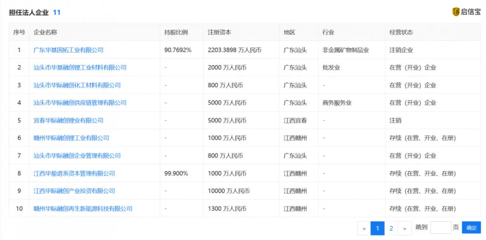 金垚瑩,女,1999年1月生,中國國籍,無境外永久居留權。現任江西華盈法定代表人、執行董事、總經理。啓信寶顯示, 這個23歲的年輕人已經是8家存續企業的法人代表 ,如贛州華際融創鋰工業有限公司、江西華普盈創鋰業有限公司等。這些企業多分佈在江西贛州和宜春,以及汕頭等,最早的汕頭市華基融創鋰工業材料有限公司2019年11月成立,註冊資本最大的江西華際融創產業投資有限公司註冊資本1億元。