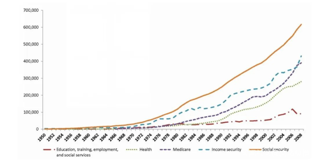 圖3 1950~2008 年美國聯邦政府的社會支出